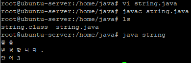 vi string.java는 문서편집기를 통해, 코드를 입력할 수 있도록 한 것입니다.
